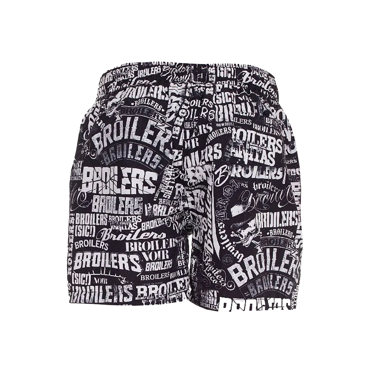 Hochwertig verarbeitete Badeshort im klassischen Broilers Allover-Look mit Gummizug und Kordeln inklusive zweier Seitentaschen vorne und eine Tasche hinten. Im Innenbund ist das das Broilers Signature Label „Designed in Düsseldorf“ eingenäht.
